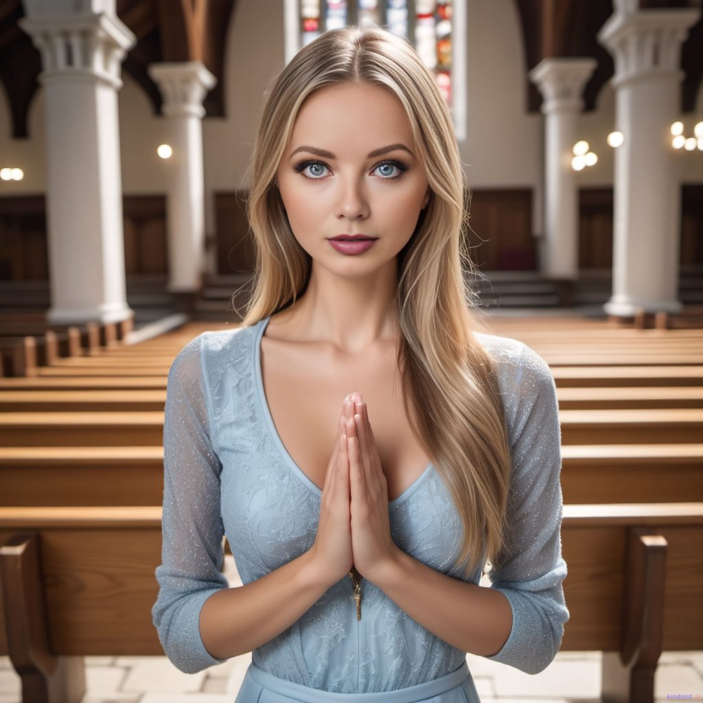 The one where I’m in a church. Posted on January 26, 2024February 22, 2024 By Zara Prompt: A closeup of a woman in a church kneeling down with her hands together praying. Original prompt by Zaralan Church, Close Up, Event, Indoors, Religion, Zara Tags:Blonde Hair, Chapel, Church, Closeup, Day, Holy, Religion, Zara